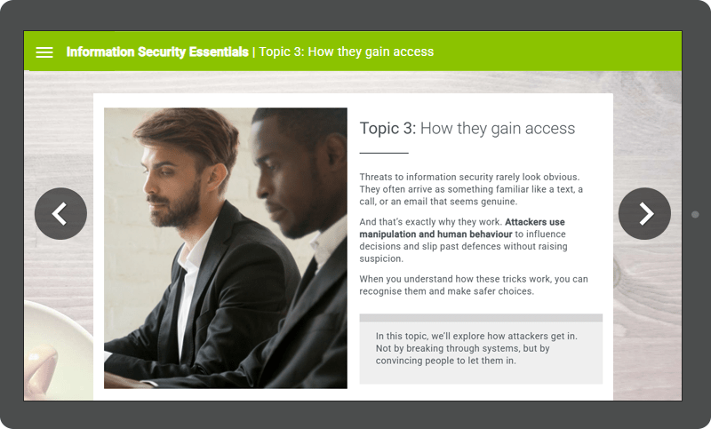Information security is about people making confident choices. By focusing on simple, consistent habits, this course helps strengthen the wider security culture across your entire organisation.